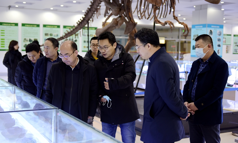 座谈前,秦云鹏一行参观了学校地球科学馆。