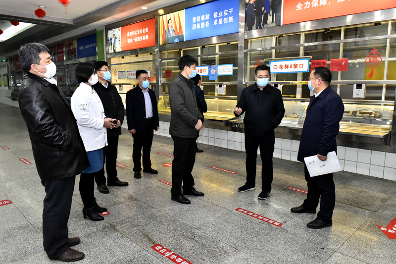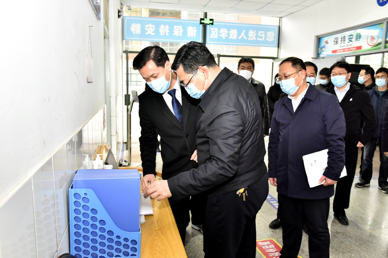 尹华一行先后实地查看了学校南、北大门入口,教学楼,学生餐厅,学生公寓,校内隔离场所等重点区域,深入了解了为迎接学生返校,各部门在疫情防控工作方面的落实情况。在实地检查过程中,尹华一行仔细查看了各处防疫设施、防疫物资的设置和准备情况,认真听取了各相关部门负责人的疫情防控工作情况汇报,详细询问了学生返校各环节疫情防控工作预案是否完善、安全措施是否到位,对于发现的问题,要求相关部门明确整改措施,立即整改。