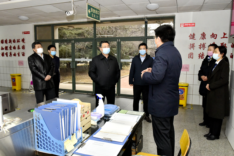 在新学期开学之际,为全面做好校园疫情防控工作,切实保障师生员工生命安全和身体健康,2月24日,党委副书记尹华率学校相关部门负责人对校园疫情防控工作进行了全面检查,确保学生安全复学。