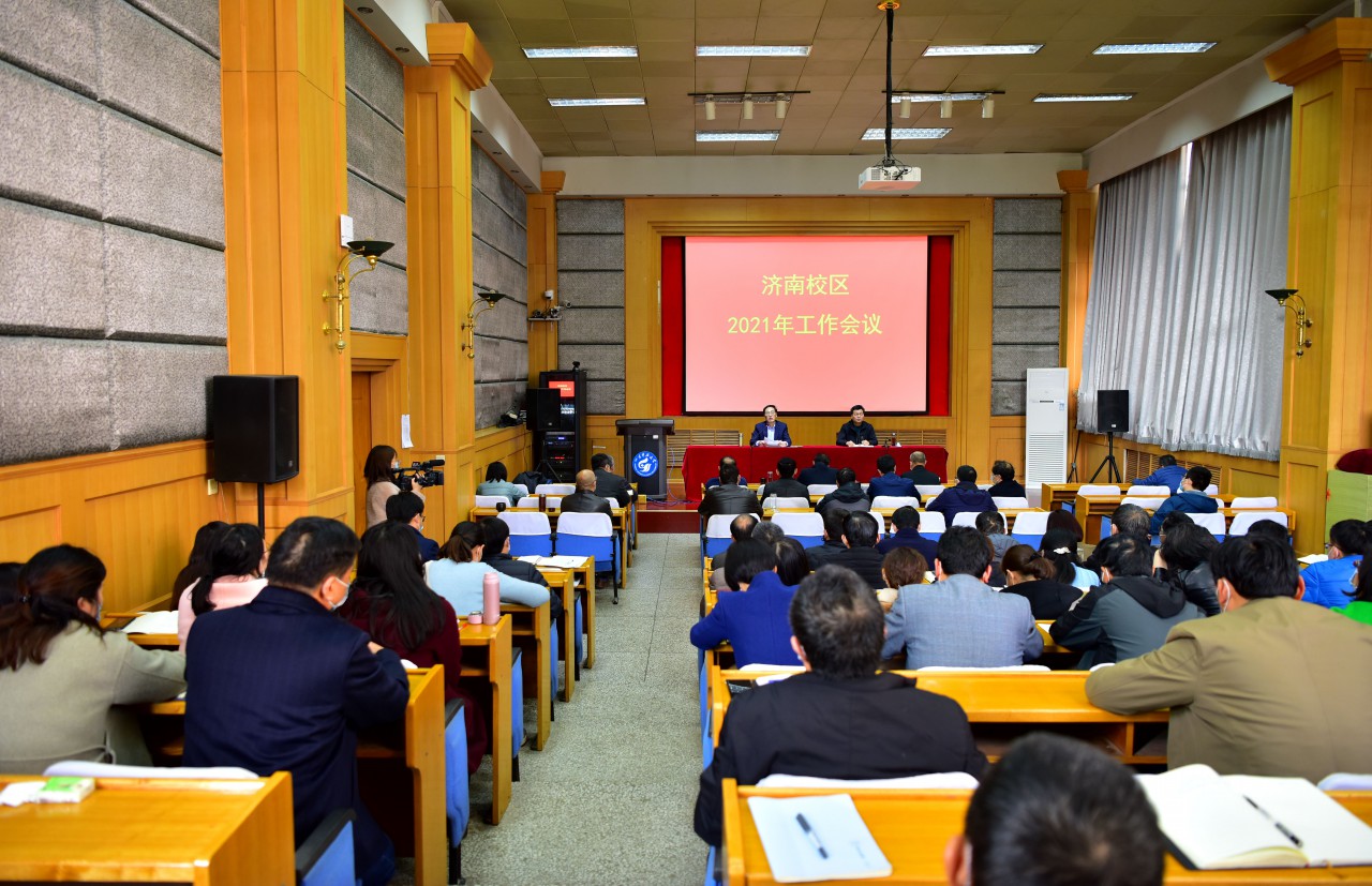 会议从全面加强党的建设、全力做好疫情防控工作、推进“三大功能区”建设、加强教学科研与师资队伍建设工作、努力提高人才培养质量、调整济南校区校园建设规划、做好各项服务保障工作等方面总结了2020年校区工作,肯定了各项工作取得的成绩,实事求是地分析指出了存在的问题和不足。会议还从切实加强党的建设和思想政治工作,不断提升统筹发展能力,积极推进“三大功能区”建设和特色发展,做好教学科研和师资队伍建设工作,提升学生教育管理服务工作水平,改善办学条件、做好服务保障等六个方面对于校区2021年工作进行了安排部署。