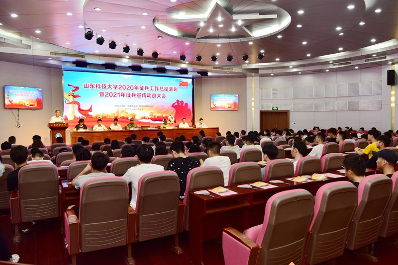 青岛警备区动员处处长陈兵、黄岛区人武部部长柳伟和学校宣传部、教务处、研究生工作部、团委负责人及各学院分管学生工作的副书记、征兵工作负责人、辅导员代表和有入伍意向的大学生代表280余人参加活动。