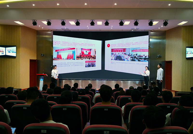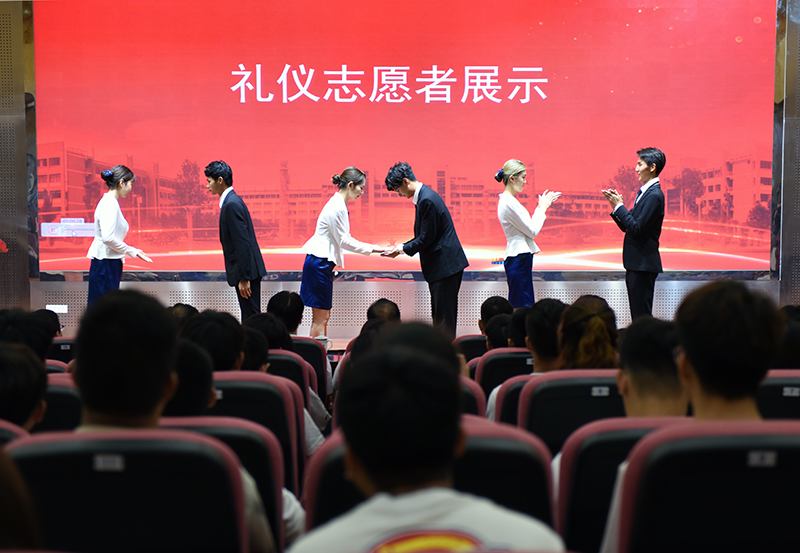 仪式上,校史讲解志愿者作了校史示范讲解;礼仪志愿者演示了各种礼仪动作,展现了科大学子的青春风采。