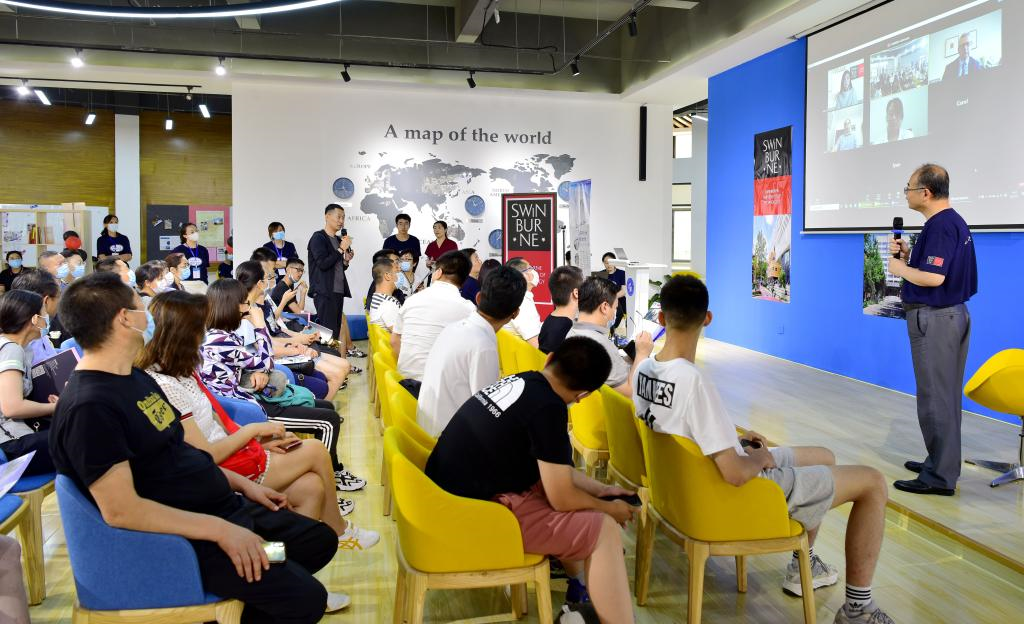 副校长兼济南校区党委书记孙鹤汀、斯威本科技大学Smith校长分别通过视频向活动致辞,济南校区有关负责人就斯威本学院基本情况、专业设置、培养特色、硬件设施、招生计划等向考生及家长做了详细介绍。考生及家长通过三地视频方式与远在澳大利亚的斯威本科技大学跨国教育学院院长Bill Damachis及我校相关学院专业学科带头人进行学科咨询及专业解答。