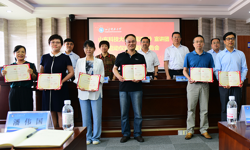 在宣讲团成立启动仪式上,山东科技大学党委副书记尹华代表学校致辞,山东科技大学党委常委、宣传部部长李克周宣读《关于成立山东科技大学〈中华人民共和国民法典〉宣讲团开展宣讲活动的通知》,青岛市黄岛区人民法院党组书记、院长王光金,青岛西海岸新区司法局党委委员、副局长张光珍到会祝贺并讲话。成立仪式上,有关领导为宣讲团教师和学生代表颁发了聘书。