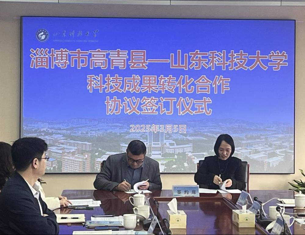 郑祥军对学校在淄博市高青县人才招引方面的支持表示感谢,介绍了淄博市高青县基本情况和近年来取得的发展成绩。他表示,山东科技大学人才济济,科研优势明显,与高青县新材料、制造业等产业发展契合度高。希望双方全方位深化务实合作,输送更多人才到淄博市高青县发展,让更多科研成果和研究课题在淄博市高青县的土地上生根发芽,为淄博市高青县高质量发展注入更多新动能。