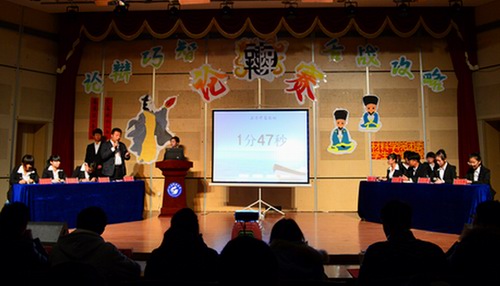 辩论赛分季军争夺战和冠亚军争夺战两场进行,每场比赛分为开篇陈词、攻辩、攻辩小结、自由辩论、总结陈词、嘉宾提问六个环节。季军争夺战中,正方“薇薇组”和反方“春蕾组”就辩题“去哪里跟与谁同行谁更重要”展开对辩,在冠亚军争夺战中,正方“志威组”和反方“小雨组”就“大学生短期支教利与弊谁更大”进行了辩论