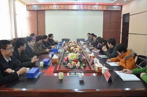 ,山东科技大学中德班举办十周年校友交流会。国际交流合作处处长李平、合作发展处处长王伟、经管学院党委书记吴高波及部分教师代表与中德班校友参加了座谈会。
