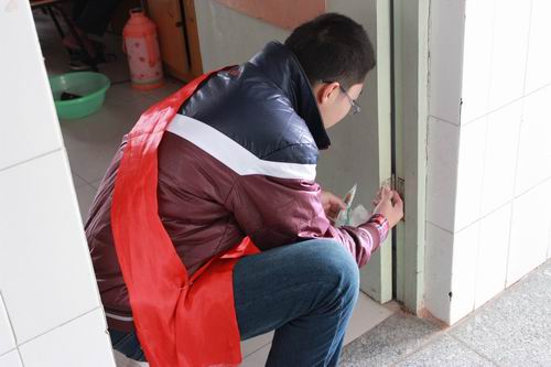 学院青年志愿者协会全体成员带着注射器和机油,两人一组,对学院所有宿舍门的噪音情况进行检查,并对产生噪音的宿舍门涂抹机油。“消噪”活动得到了学院师生的一致好评。