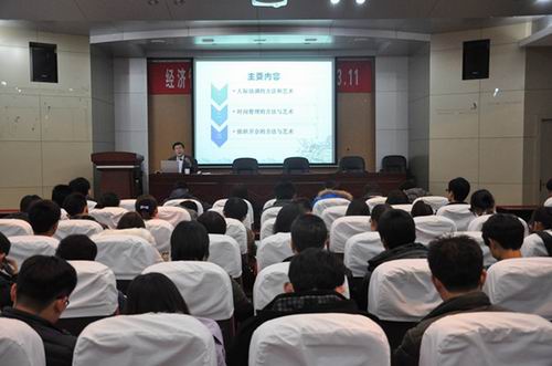 吴正龙从“人际协调”、“时间管理”、“组织会议”三个方面讲述了学生干部的工作艺术和方法。他强调要注重培养健康的个性心理,建议学生干部制定计划和程序,正确处理学习、工作、休息之间的关系,并指出了关于综合做好会议工作的几点方法。
