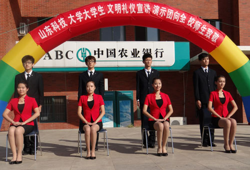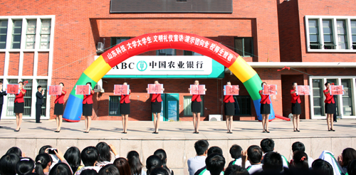 级大学生举办文明礼仪宣讲活动,全体大一新生在繁星广场观看了宣讲演示。