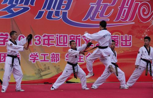 ,由校团委、学工部、学生会联合举办的“青春 梦想 起航”2013年迎新文艺演出在繁星广场举行。2013级全体新生和军训团首长、全体教官一同观看了演出。
