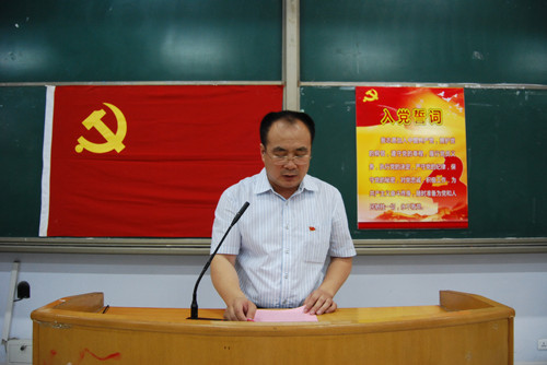 庄严的国歌拉开了本次大会的帷幕。随后老党员为新党员配发党徽,信息学院团委老师陈猛带领新党员进行宣誓,重温入党誓词。电科09-1班张涵代表新党员发言,他表示作为一名新党员,会把加入党组织作为自己人生道路上的新起点,在接下来的人生道路上继续奋斗。计算机10-7班柳继强代表入党积极分子发言,表达了积极向党组织靠拢的决心与信心。信息学院党委书记李克周发表讲话。他首先代表学院党委向参加入党宣誓的新党员表示热烈的欢迎,同时要求大家不仅要从组织上入党,更重要的是从思想上入党。李书记对全体党员提出了希冀,希望他们进一步增强党员意识、责任意识、大局意识、服务意识,提高自身修养,在一言一行中,发挥模范带头作用,时时处处树立起党员的旗帜。(通讯员:李慧 李源 实习编辑:杨莉)