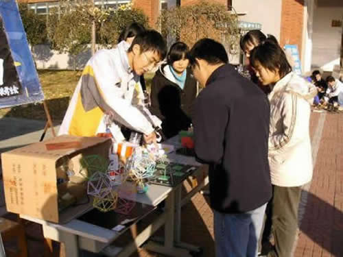现场解说员向路过的同学认真仔细地介绍着参展作品的用途、原材料和寓意等相关内容。活动吸引了众多同学驻足观看,有的还针对参展作品进行了热烈地讨论,并对作品提出了一些意见和改进的建议。(通讯员:武江明 孔祥荣 李红梅 实习编辑:赵清玉)
