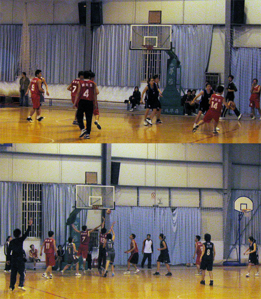 日,校女子篮球队与研究生男篮精英队举行了一场别开生面的篮球友谊赛。