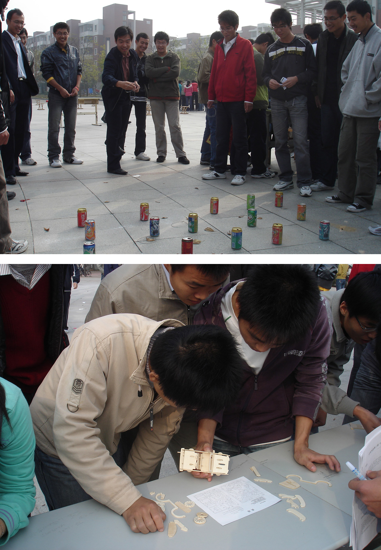 本次活动由机电学院社团联合会主办。活动现场气氛热烈,其中最热闹的项目是机器人协会的“踩气球”大赛和风云交际社的“猜字谜、抢答题”活动; “心梦飞翔”协会的飞镖大赛、乒乓球协会的“双龙戏珠”活动、汽车协会的“悍马奥迪保时捷拼模”大赛也吸引了一批又一批的同学参与其中。