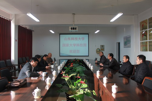 阳信县水落坡镇来山东科技大学科技园洽谈合作项目