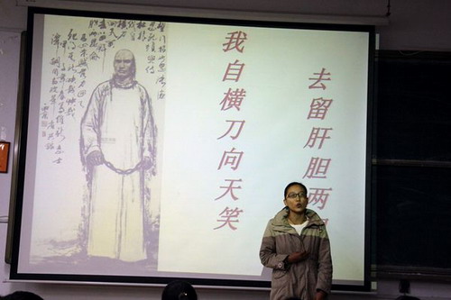 比赛过程中,参赛选手结合背景音乐和幻灯片进行演讲,铿锵有力的语调、激情昂扬的状态赢得现场阵阵掌声。“感受着今天的幸福生活,耳畔响起的却是隆隆炮火,眼前浮现的是熊熊火光……”选手们表情庄重、声情并茂,时而慷慨激昂,时而低声细语,抒发了对革命先烈的深切缅怀,表达了誓为中华之崛起而读书、为国家之富强而拼搏的决心。最后,刘宝春对选手的表现进行点评,并提出中肯的建议。