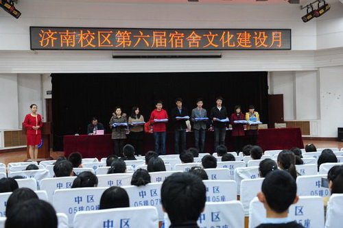 11月4日,济南校区举行“第六届大学生宿舍文化建设月”活动启动仪式,校区全体学生工作干部、学生宿舍长、获奖学生代表等500余人参加了活动。校区管委副主任方亨福出席仪式,学生处教室宿舍管理中心主任叶生术主持启动仪式。