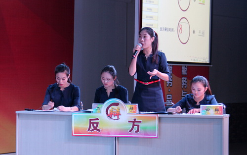 共有12支代表队参加了本届历时两个学期的比赛。经过角逐,最后的总决赛在幼儿园代表队和学术交流中心代表队之间展开,两支代表队围绕“‘创造服务之美’与‘传递爱的味道’谁更能代表后勤核心价值观”这个辩题展开了激烈的辩论。通过一辩陈词、正反攻辩、攻辩小结、自由辩论和总结陈词五个环节,双方引经据典、条分缕析,精彩的表现赢得了现场观众的阵阵掌声。