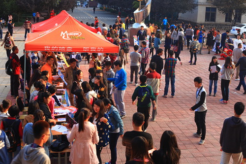 近日,济南校区举行学生社团纳新活动。青年志愿者协会、英语俱乐部等20多个学生社团参加了集中纳新。
