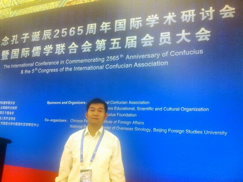 近日,纪念孔子诞辰2565周年国际学术研讨会暨国际儒学联合会第五届会员大会在北京人民大会堂召开,马克思学院中国传统文化研究所副所长、副教授杨立蛟应邀参加。