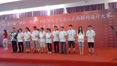本次比赛由中国电子学会主办,中国电子学会嵌入式系统专家委员会协办,吸引了中国石油大学、山东科技大学、济南大学、山东建筑大学、临沂大学、鲁东大学等39支高校队伍参赛。电子学院的设计作品成功实现预期功能,学生代表队