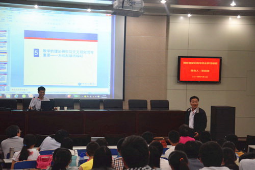 报告会上,郭田德讲解了有关指纹识别的知识与应用,并指出指纹识别与数学的密切关系,强调运用数学方法研究指纹。在谈到优化算法时,郭田德讲解了全局优化模型。会后,郭田德对现场学生的提问做出解答。