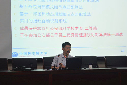 近日,中国科学院大学数学科学学院执行院长、中国数学会常务理事郭田德教授应邀为数学学院师生作报告,报告内容为《指纹自动识别与优化算法研究》。
