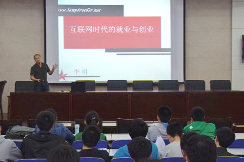 兄弟连联合创始人、副总裁李明为信息学院学生做了题为“互联网时代的就业与创业”主题宣讲。