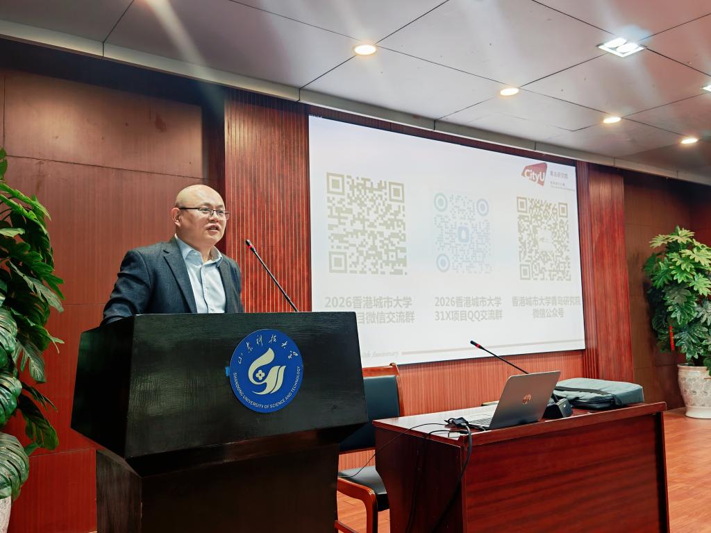 王永君在致辞中表示,今年3月学校应邀参加国际人才培养暨高校就业创业交流研讨会,期间我校与香港城市大学、香港城市大学青岛研究院就“‘3+1+X’国际人才联合培养”项目达成重要合作共识,率先在机械工程、材料科学与工程、系统工程、资讯系统学、生物医疗工程五个专业领域启动深度合作。本次宣讲会是落实三方合作共识、推进项目实质性落地的重要举措,希望同学们把握机遇,积极投身国际化培养体系,努力成长为符合时代发展需求的高素质复合型人才。