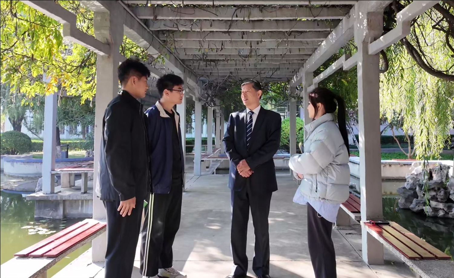 关工委的老同志们深知,要真正为新生提供有效的帮助,必须切实了解他们的需求,为此,关工委团队展开了深入研讨,精心准备了一系列饱含温情的问题,这些问题编织起与新生沟通的桥梁。关工委成员张荷英、刘传玺、高飞等人生导师,怀揣着对学生的关爱,深入到学生中间,当他们问出“来到学校的第一感受是什么?”时,新生们眼中闪烁着被关注的惊喜;“是否适应大学生活?”这一问题,又让那些或许正在经历适应期困扰的学生感受到了贴心的关怀;而“对自己的大学生活有哪些具体的规划和目标?”则像是一把钥匙,开启了新生们对未来憧憬的大门,这些看似简单的问题,却承载着关工委沉甸甸的关怀之情,如春风化雨,滋润着每一位新生的心田。不仅如此,关工委团队还为新生们送上了真挚的开学寄语。这些寄语是对新生们的殷切期望,是激励他们在大学这个充满机遇与挑战的舞台上勇敢追梦的号角,老师们有对他们勇敢探索知识海洋的鼓励,有对他们积极参与校园活动、拓展综合素质的期待,更有对他们在青春岁月里保持积极向上心态的嘱托。每一句寄语都像是一颗希望的种子,将每一份关怀播撒在新生们的心中,等待着他们用努力和汗水去浇灌,绽放出绚烂的花朵。
