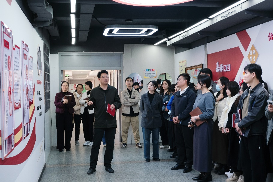 周尚涛介绍了“嘉源驿站”的体系架构、文化内涵和阵地功能等方面的情况。他表示,“嘉源驿站”充分挖掘学科专业特色,以团结小家、共建大家、报效国家为建设理念,以社区组织体系建设、基础支撑建设、实践运行推进、文化内涵提升为工作图谱,积极探索集学生党建引领前沿阵地、“三全育人”实践园地、平安校园样板高地、智慧服务创新基地为一体的教育生活园区,构建学生社区“家文化”育人新生态。