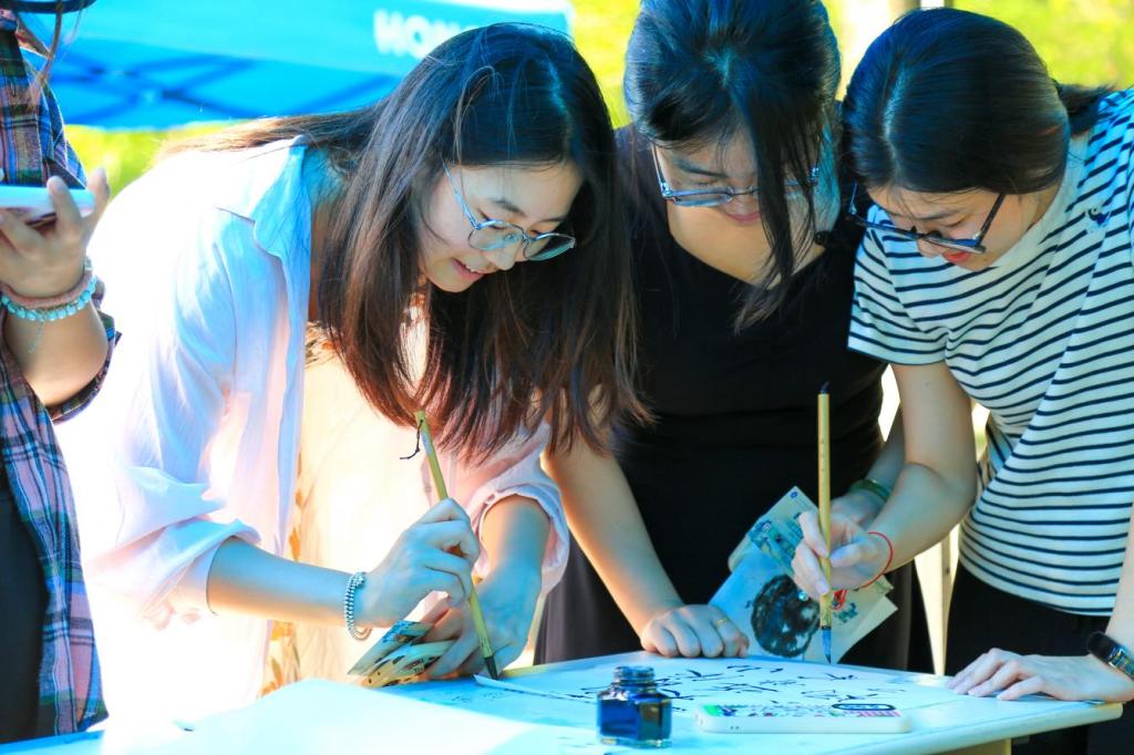 此外,活动还设置丰富多彩、轻松有趣的游戏互动环节。学生们手持竹简临摹篆书,体会“刀笔春秋”的书写之趣;山科文创拓印区将校徽与传统纹样结合,碰撞出古今交融的创意火花;艾草香囊制作区清香弥漫,参与者穿针引线间寄托端午安康的美好祈愿……让学生们无不感叹传统艺术的精美,还吸引力不少外国留学生前来参与。