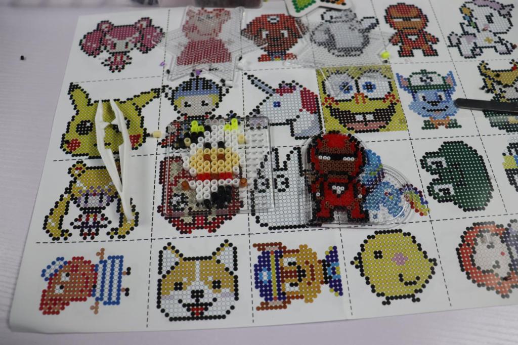 活动伊始,自强社志愿者为参与学生讲解了拼豆创作的基本方法,发放了活动所需的道具。面对五彩斑斓的速溶豆材料,参与学生或独立构思,或交流协作,大家在镊子与垫板的碰撞中展现灵感,将一颗颗细小的速溶豆排列成各种表情包、有趣的画作等创意作品。