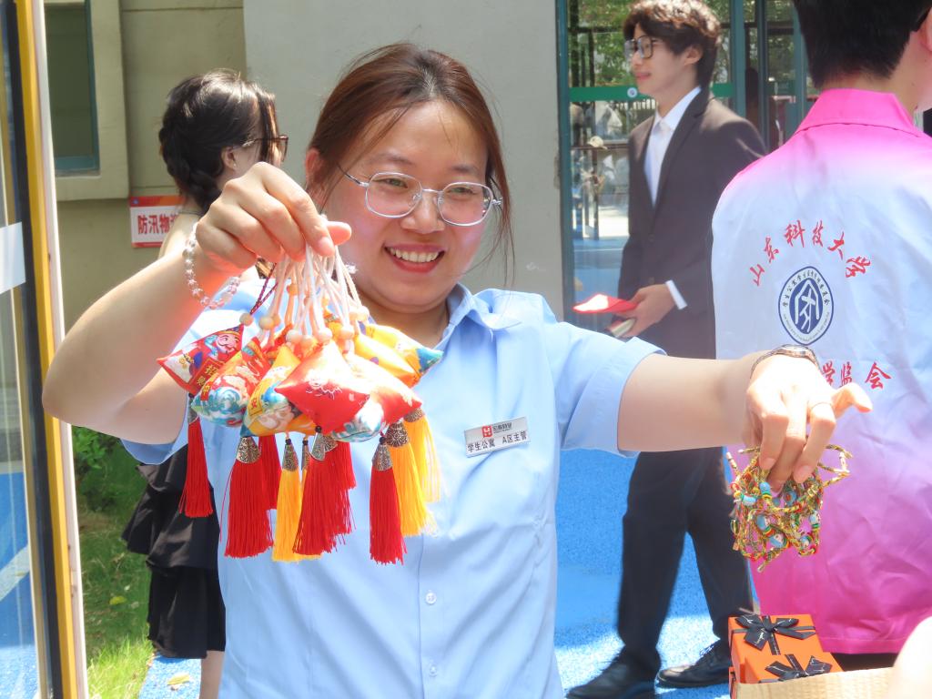 学生社区向参与活动学生赠送端午香包和五彩绳