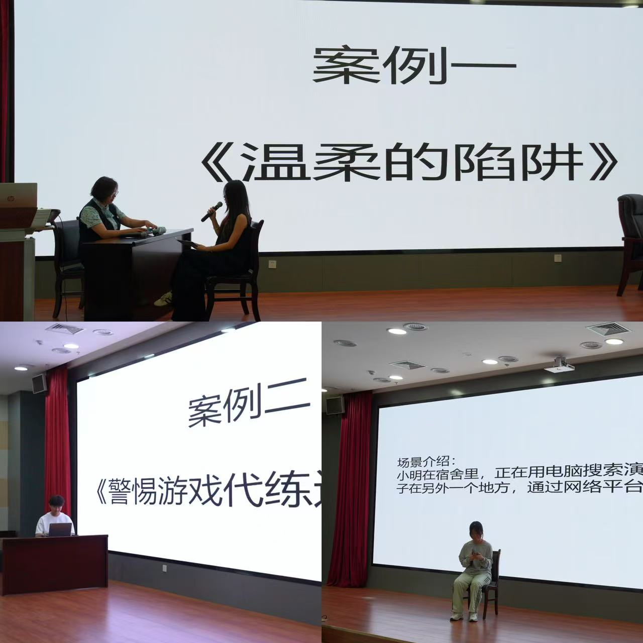 为增强互动性,活动设置“情景模拟”环节:现场同学与银行工作人员现场演绎,模拟“杀猪盘”“演唱会购票网络诈骗”“游戏代”等场景,现场掌声不断。参演同学表示:“以前觉得诈骗离自己很远,今天才知道要时刻保持警惕,不贪小便宜、不轻信陌生人。”