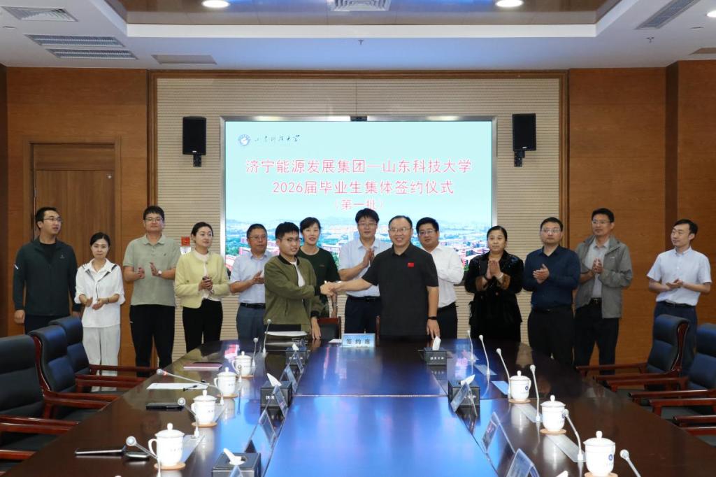 9月18日,济宁能源发展集团组团招聘会上吸引约千名毕业生参加,经过紧张有序的宣讲、投递简历、面试,此次组团招聘取得丰硕成果。次日,济宁能源发展集团与我校2026届毕业生举行了集体签约仪式。20余名来自采矿工程、机械工程、电子信息、计算机科学与技术等专业的学子现场签署就业协议,提前锁定职业发展赛道。