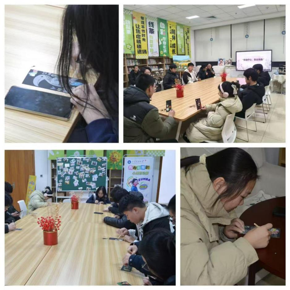 活动期间,学生参与热情高涨,艺术学院路鸿博同学分享道“在漆扇涂绘中,我完全沉浸在色彩与图案创作中,学业压力仿佛随画笔缓缓消散。”许多同学表示,通过活动不仅缓解了压力,更学会了以积极心态面对挑战。