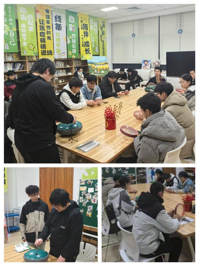 4.【周四润心计划】“乐享悠然,律动心声”音乐疗愈体验:发挥“美育润心”育人功能,通过“乐器体验-合奏共鸣-音乐冥想”等环节,促进情绪表达、压力释放与内在赋能,实现身心放松与心理应对能力的提升。