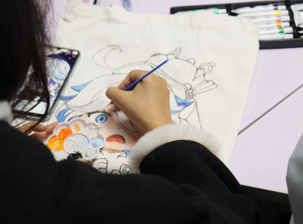 手绘帆布包主题活动为学生提供了发挥创意的舞台。学生手执画笔,在空白帆布包上倾注自身对美好事物的独特诠释,校园地标、卡通形象等鲜活元素跃然画布之上。针对零基础参与者,工作人员全程提供细致指导,助力大家顺利完成专属作品,让每一位学生都能在创作中收获满满成就感,深刻感受艺术创作的包容性与趣味性。