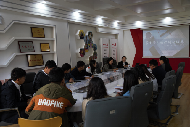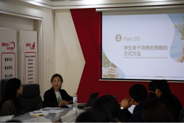 牟杰以“如何快速打开局面,深入学生群体开展工作”、“如何做到慧眼识珠,精准识别潜在的学生骨干”、“如何将学生干部培养成领头雁”为话题切入,从什么是学生骨干、学生骨干的特征与识别、学生骨干培养的策略和方式方法、学生骨干培养中的思考和体会四个方面进行交流。如何挖掘学生骨干潜能、培养品质、形成素质,牟老师通过案例分享互动,提出骨干培养模式和方法上,通过成功的体验、仪式性的肯定、客观存在的优势来激发学生骨干角色意识;通过培养学生骨干解决困难的能力、追求卓越的信念、创新工作的思维来培养学生骨干素质;通过激发学生骨干的责任感、提升追求,培养政治素质来推动学生骨干发挥作用。学生骨干的培养是育心育人的事业,需要辅导员用心用情,要掌握教育发展规律,做学生骨干和学生成长的榜样,与学生共同成长。