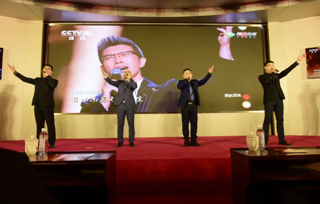辅导员吴昊、白镇源、杨治宽、孟庆祥为学生唱起《青春》