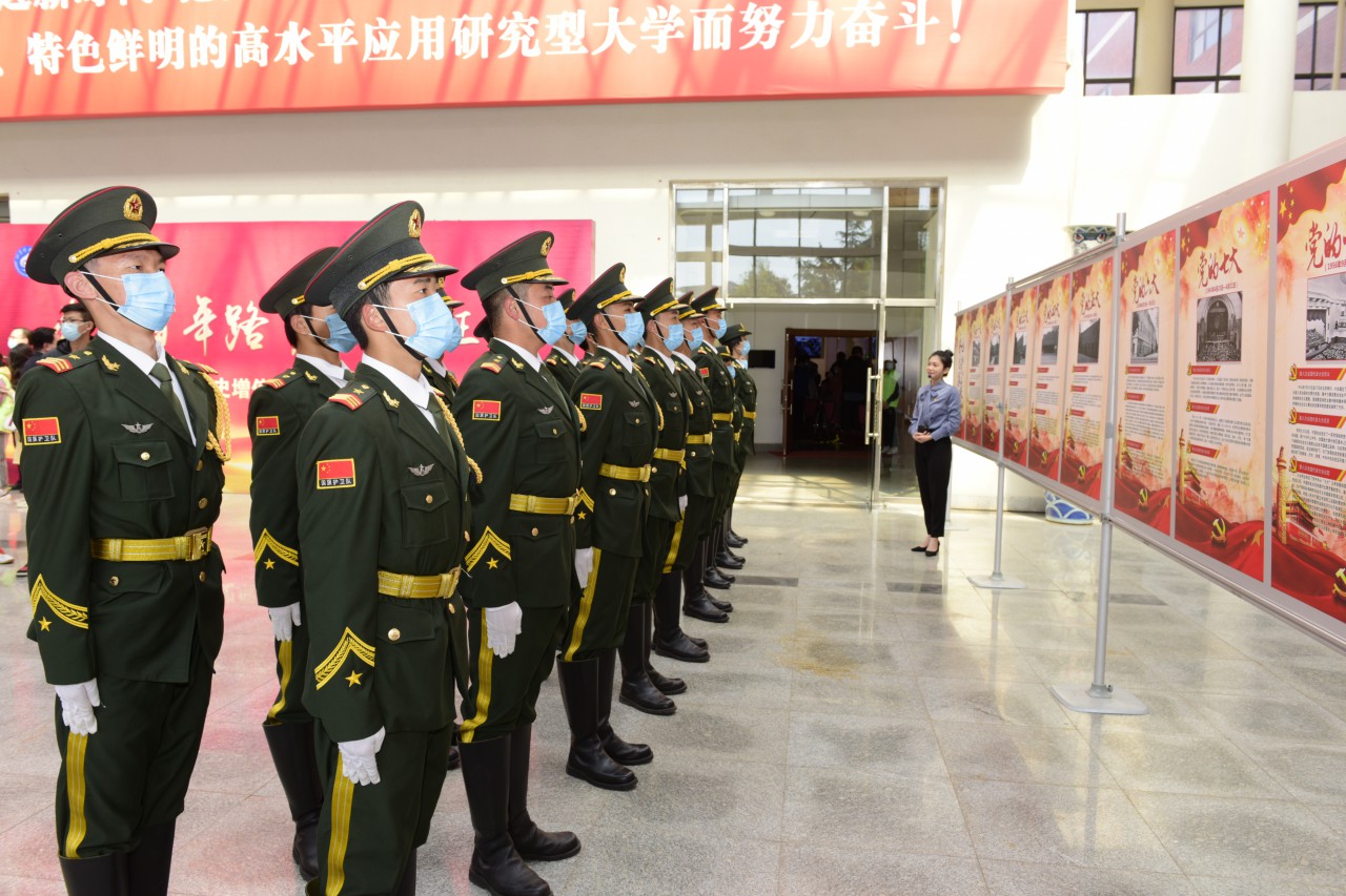 正式开讲前,同学们先参观了“永远跟党走”图片展,对中国共产党100周年的光辉征程和伟大成就进行了系统学习。