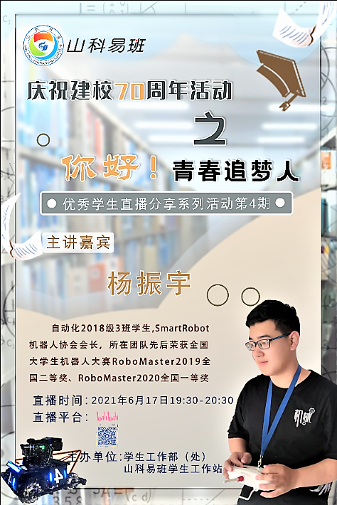 直播预告山科易班“庆祝建校70周年之你好!青春追梦人”优秀学生直播分享第4期