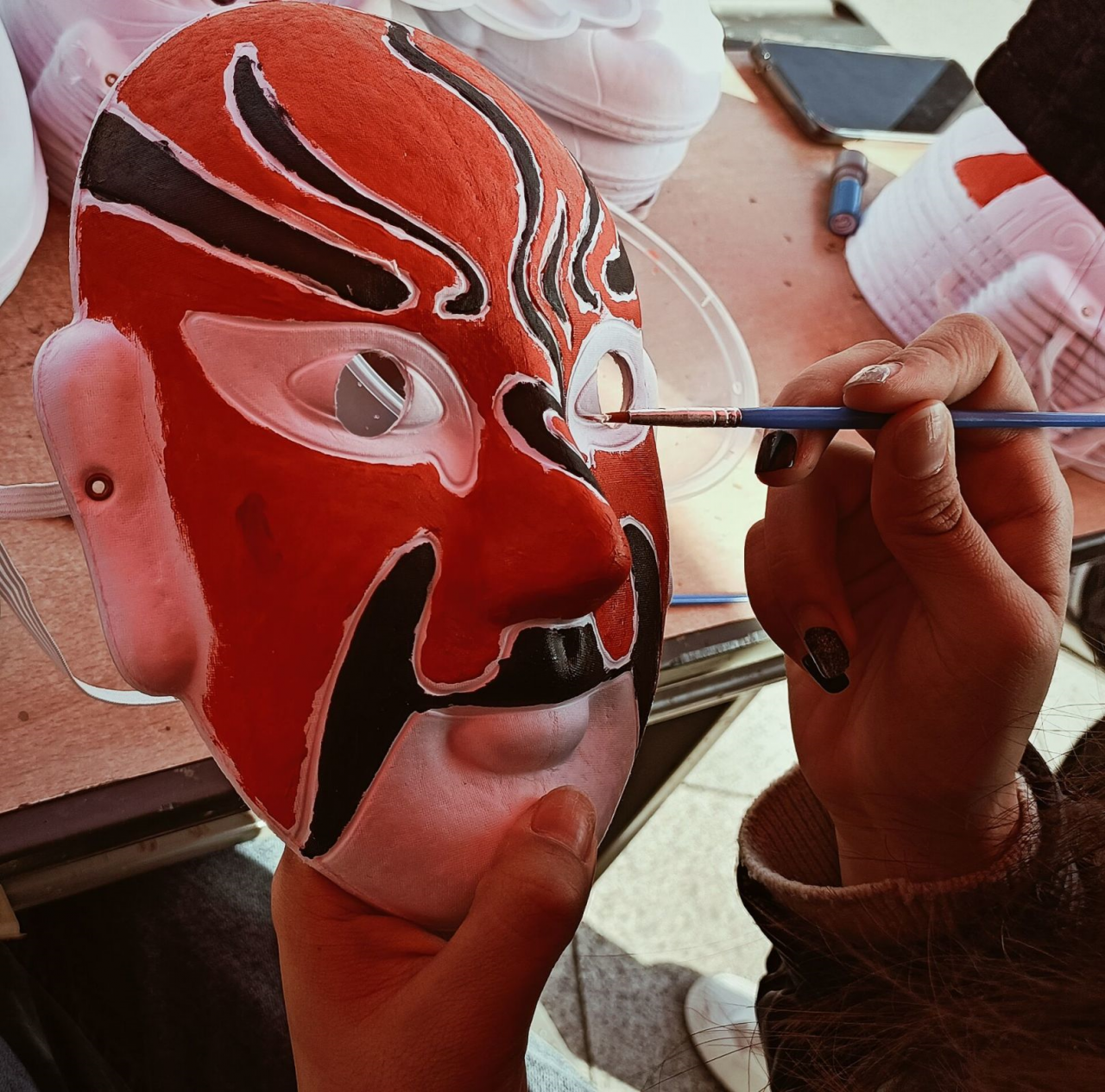 学生现场体验画脸谱
