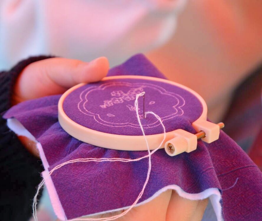 学生在现场体验刺绣
