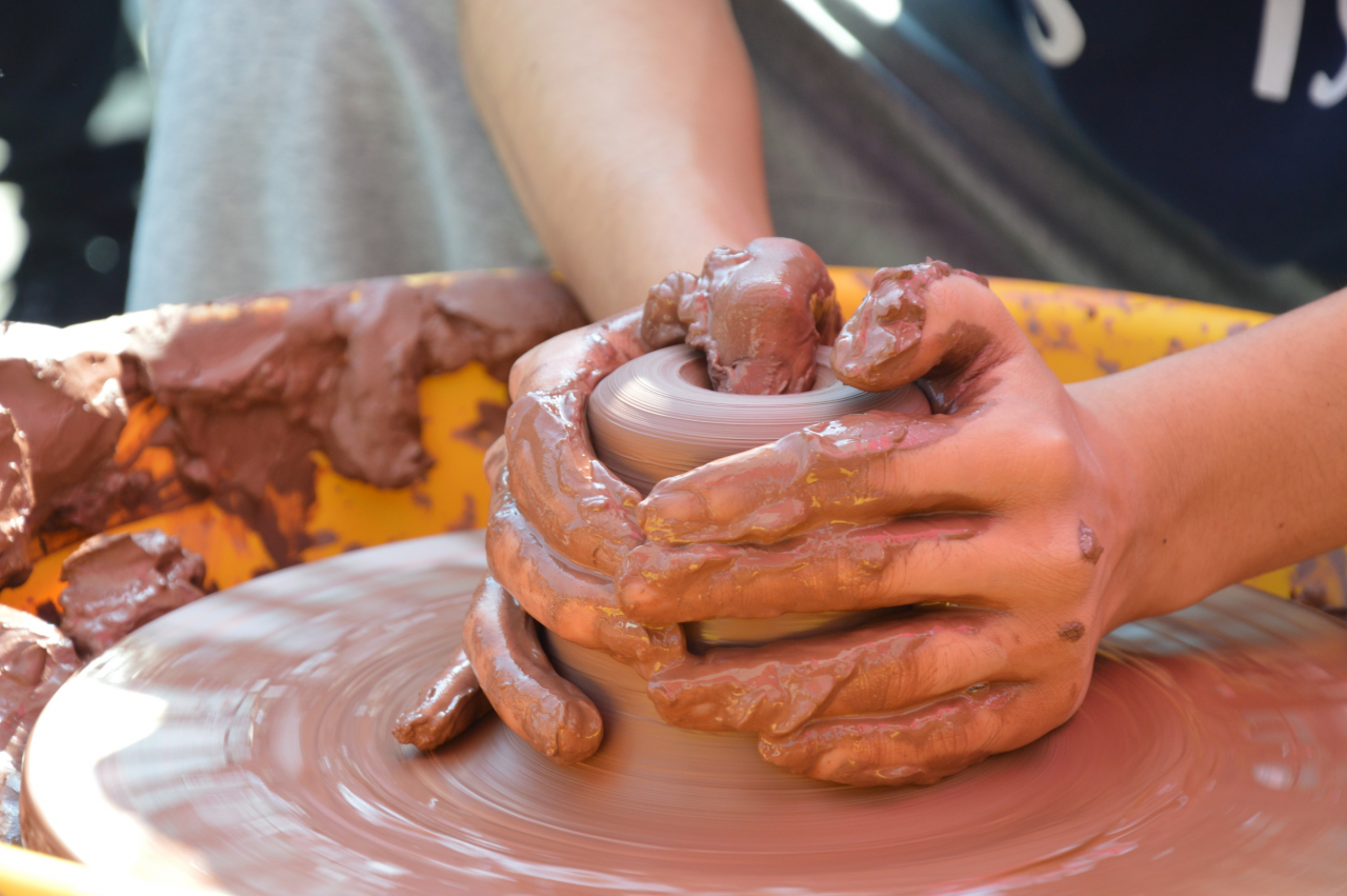 学生在现场体验陶艺