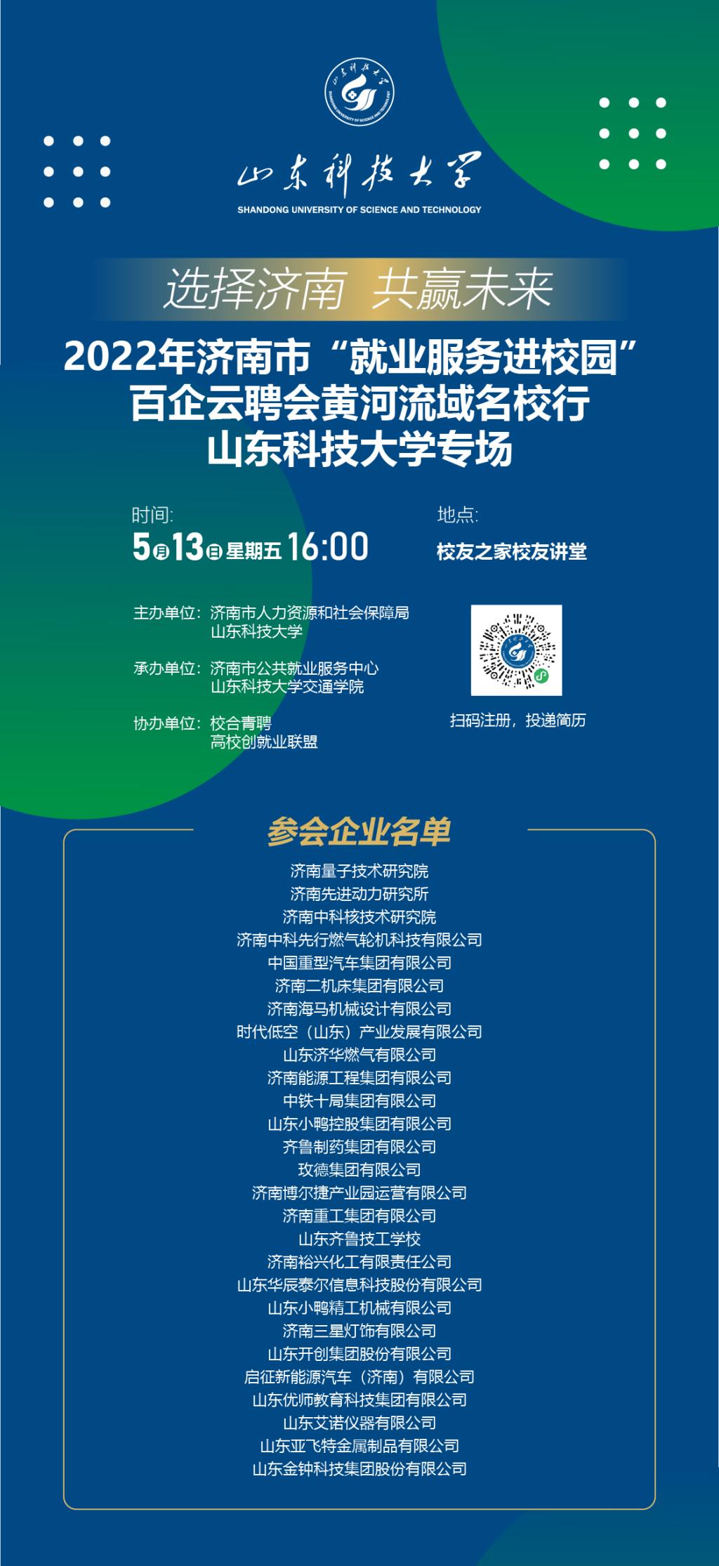 “选择济南 共赢未来”2022年济南市“就业服务进校园”百企云聘会黄河流域名校行山东科技大学专场
