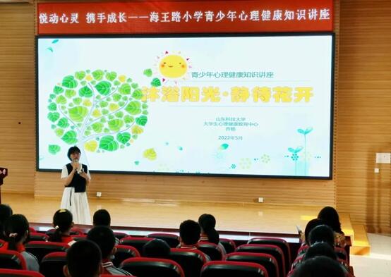 5月24日,根据青岛市教育局“心理专家进校园”工作安排,我校大学生心理健康教育中心讲师乔杨为海王路小学五、六年级共600余名小学生开展了以“沐浴阳光、静待花开”为题的心理健康主题讲座,我校心理健康联合会成员从乾担任了讲座助手。