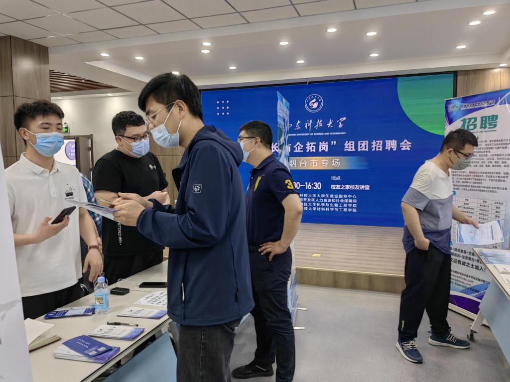 作为本次“访企拓岗专项行动”重要成果之一,学校于5月30日举办烟台名企专场招聘会,烟台市21家企业在烟台市开发区人力资源与社会保障局带领下来到山东科技大学组团招聘,提供就业岗位300余个。6月1日,山东御龙石化有限公司举办山东科技大学线上专场宣讲会,提供50个就业岗位。